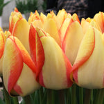 These hybrid tulips are the amazing result of cross breeding between Fosteriana and Darwin (Single Late) tulips. Darwin Hybrids are very tall plants and when their gigantic blooms open up flat towards the end of their flowering time, they can measure as much as 5-7 in (12-17cm) in diameter. They make a gorgeous display either in the garden or as cut flowers in a vase: a real show stopper!