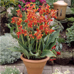 Cannas are a very popular summer garden plant because they create a real tropical feel and provide not only spectacular flowers but lush foliage as well! They do particularly well in pots and containers. Cannas love full sun! Plant them 12"- 30 cm apart in rich, moist soil and make sure to add generous amounts of compost and manure. In most Canadian zones the rhizomes must be lifted before the first frost and stored in a frost-free place. Clean and divide before replanting.