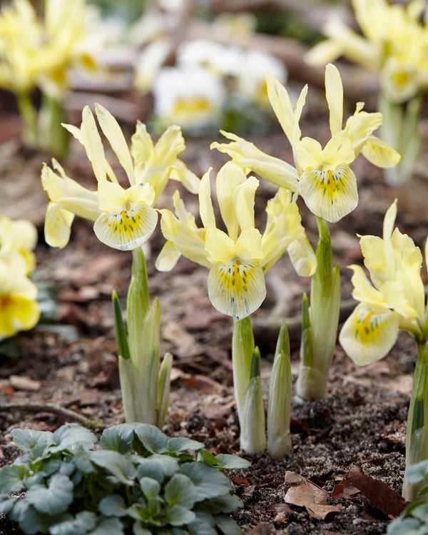 Belonging to the Reticulata group of irises, 'Katharine's Gold' is characterized by its short stature, large flower in relationship to the plant as a whole and very early flowering. They are very hardy little plants. Mix them in amongst other traditional early bloomers such as crocus, winter aconites and snowdrops.