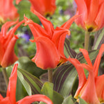 Of all the tulip varieties available, Fosterianas are one of the earliest to bloom with remarkably wide flowers on strong stems. These bright flowers offer impressive displays when planted in mass groupings and they combine well with early-flowering daffodils and low-growing bulbs such as Muscari. They can be left in the ground to perennialize and spread.