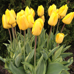 You'll want to grow this one for the foliage alone. Broad yellow stripes on apple green leaves topped with bright yellow flowers. Simply super!